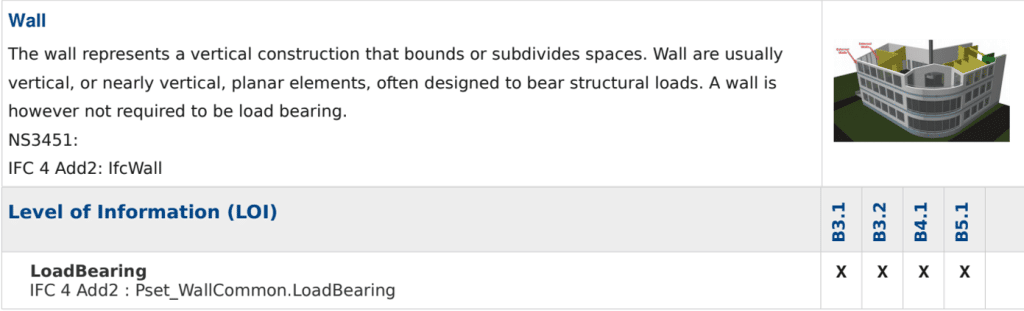 Example 3. bSDD registry for IfcWall with LoadBearing requirement.