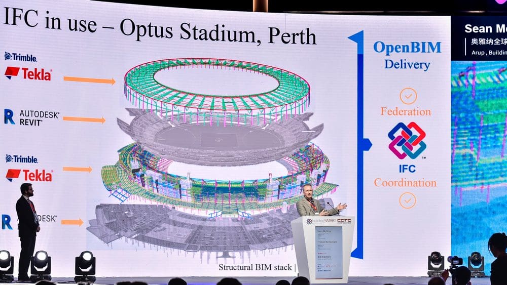 The opening plenary was divided into three topic areas under the umbrella of “Moving Towards a Digital Future”. The first topic covered in the opening plenary was “Digital Construction: How digital technology is changing the face of construction”. The first presentation titled ‘Delivering Digital Projects’ was delivered by Tristan McDonnell, Director and Sean McGinn, Associate Principal both from Arup. This address highlighted the relevance and importance of IFC for federating and coordinating design disciplines. An example of openBIM in practice was shared via a project called the Optus Stadium in Perth where the structural stack benefited from a federated design model for the coordination, quantity take-off and automated model comparisons that was enabled by buildingSMART standards. Mr McDonnell said that “IFC is a key enabler” and IFC is a big part of Arup’s digital transformation strategy. It was also shared that they still get client-driven requirement for IFC on many projects. The next presentation was titled ‘Japan's Construction BIM Leading the World to the Next Stage’ delivered by Kazumi Yajima, BIM Director, Kajima Corporation. Mr Yajima showed the progress being made in Japan and by Kajima Corporation in the development of BIM applied to smart cities, sensors and IoT devices. The acknowledgement that open data standards, like those provided by buildingSMART, can help to ensure both building and infrastructure projects and assets can align, such as BIM/GIS. The “society 5.0” message was clear: “super smart cities” are possible with an understanding of the complete lifecycle. Mr Yajima commented that society 5.0 is fully supported by the cabinet office in Japan and is fully supported by the local Chapter in Japan. Further examples of Kajima leading the way in robotics and smart connected devices showed the commitment from one of the leading construction companies in the world. The final presentation in this topic was titled ‘Digital Supply Chains in the Built Environment’ delivered by Enzo Blonk, Director Industry Engagement for Technical Industries, GS1 and Paul Surin, Global Lead for the Built Environment, IBM. This ‘DSCiBE’ project has been spearheaded by GS1, IBM, Cobuilder and bSI to tackle the need for digitization in supply chains. Mr Blonk and Mr Surin both highlighted the benefits of standards and the lack of harmonization if these are not followed. The importance of data templates was highlighted, as well as the role GS1 can play in unique barcodes or identifiers. A product data template is a way of defining properties for a product from a trusted and credible source. The initiative aims to connect customers to products in a more effective way than it is today. The approach has been to work collaboratively on a set of use cases to solve industry challenges to find a solution that works. The presentation signed off with the statement that “data is the new oil”.