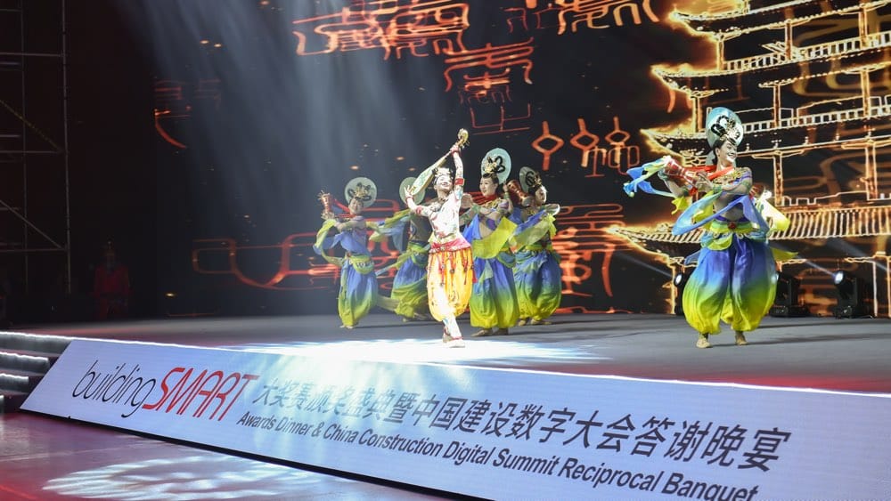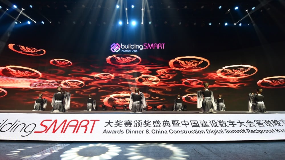 The awards ceremony which was held shortly after the opening plenary was a spectacular event. With a sell-out crowd of almost 400, high-quality finalists in attendance and wonderful hosting from the China Chapter made for a memorable evening. The audience was treated to some spectacular traditional Chinese dances with colourful backdrops and cultural music that added to the whole experience. The event was welcomed by Aidan Mercer, Marketing Director of bSI and Lai WEI, Secretary-general of buildingSMART China Chapter.