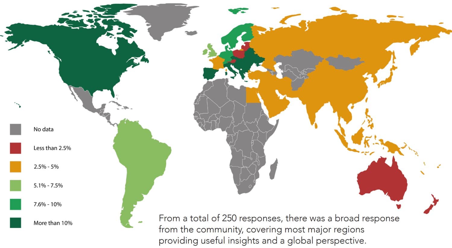 Europe and the Americas provided the bulk of the responses for the survey, which was developed in collaboration with Oracle Construction and Engineering. Organizations of all sizes were represented, though those with more than 500 employees made up the largest proportion, and around three-quarters served both private and public sector clients.