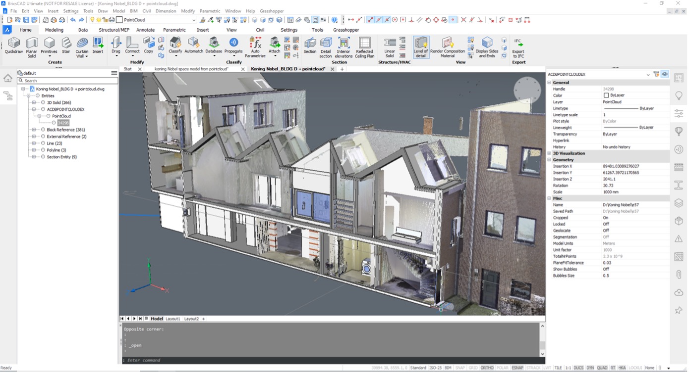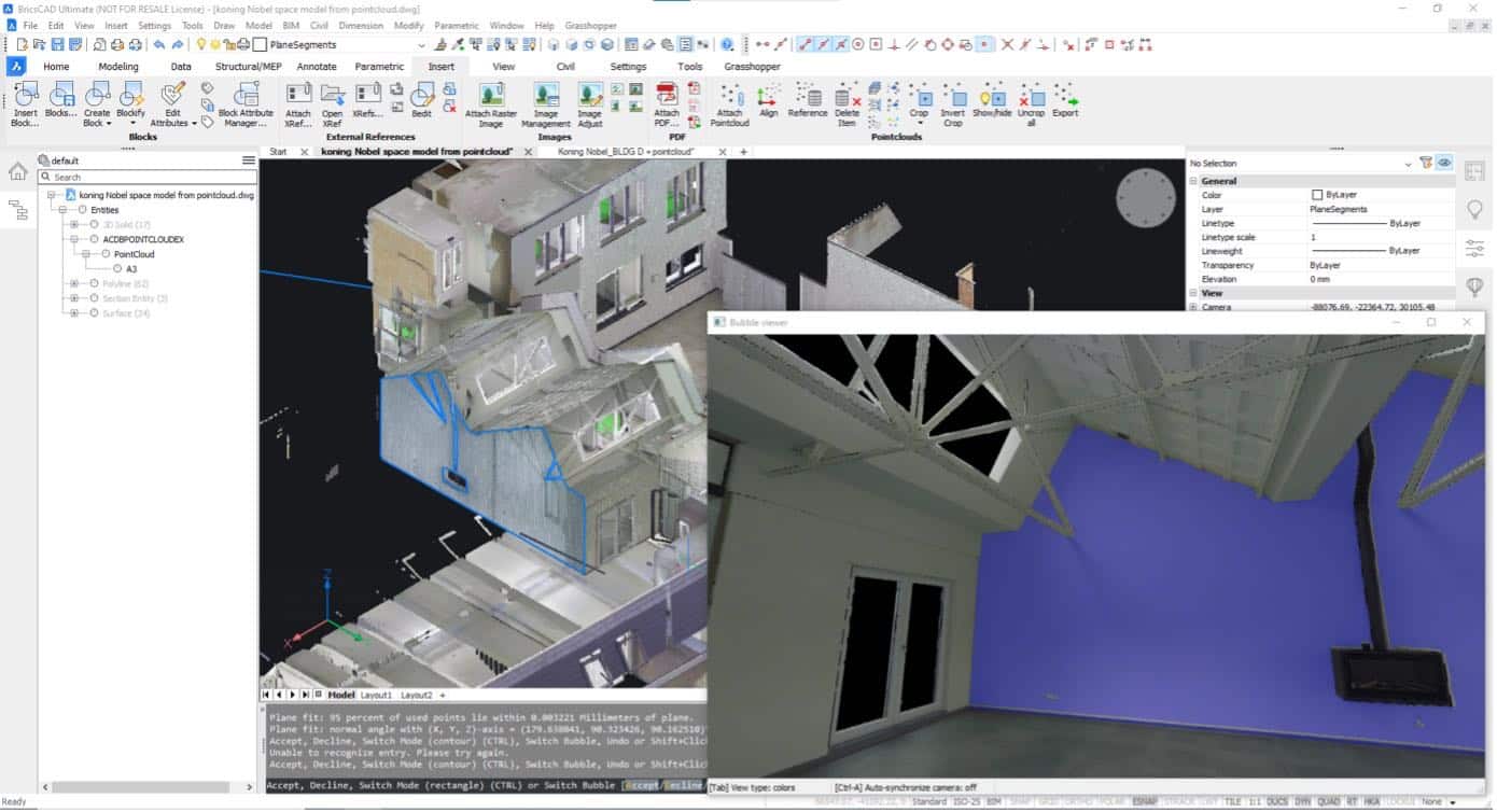 When it comes to renovating existing buildings, often no 3D models are available. One solution is to use laser scanners to create a digital copy (a point cloud) of the building. The main challenge here is to convert these unstructured points into usable geometry. The team at Bricsys is working on semi-automatic tools to obtain these 3D solids.